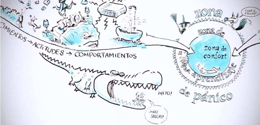Más allá de tu zona de aprendizaje, está la que llamamos la zona de pánico o la zona de no experiencia. Aquellos que no quieren que la transites, que suelen ser los que nunca salen, dicen que es la zona en la que pueden ocurrirte cosas gravísimas. Es como Finisterre, más allá, se acaba el mundo.